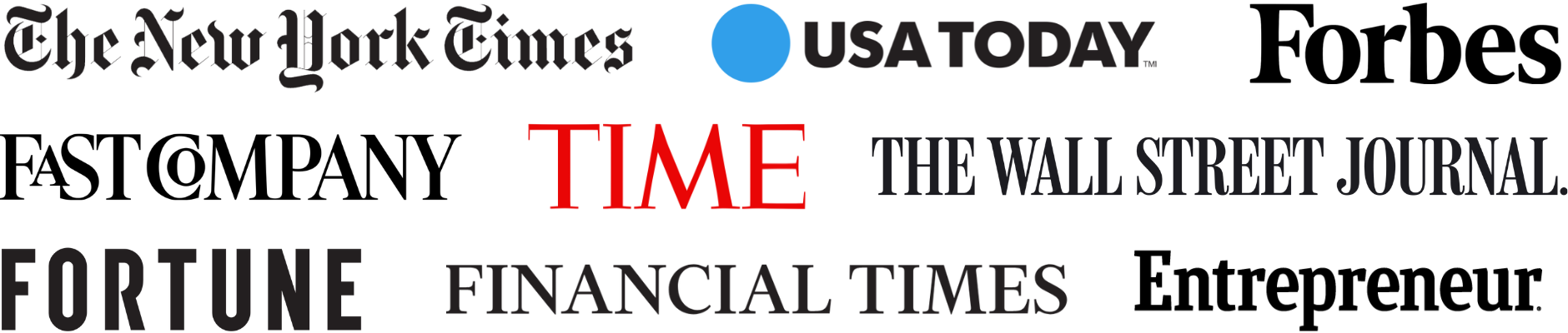Harvard Business Review, Entrepreneur, Forbes, Next Big Idea Club, Business Insider, TIME/Charter, Chief Executive, Rotman Management Magazine, LinkedIn’s Hello Monday